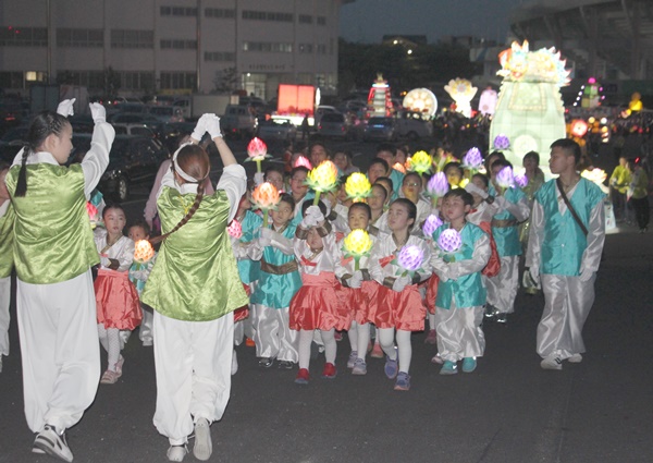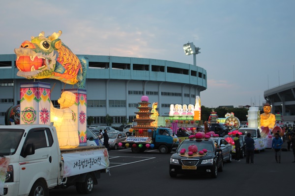 부처님 오신 날 봉축 대법회 및 연등축제가 제주불교연합회(회장 탄해 스님·한국불교태고종 제주교구 종무원장)가 주최하고, 제주불교연합봉축위원회(대회장 허윤 스님·대한불교조계종 제23교구본사 관음사 주지) 주관으로 7일 오후 6시 제주시 종합운동장 광장에서 열렸다.