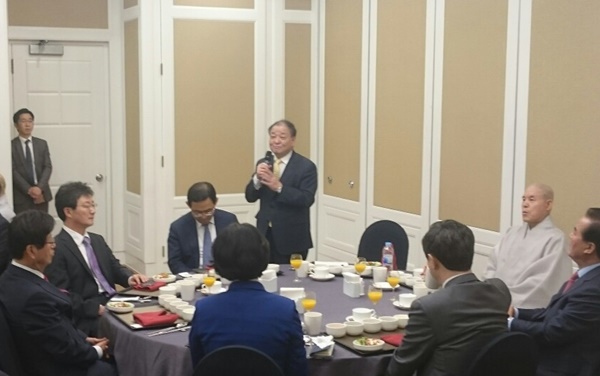 국회 불자모임 정각회 회장 강창일 의원(제주시 갑, 더불어민주당)이 국민 화합과 자비를 실천하는 참된 정치를 펼쳐달라고 당부했다.