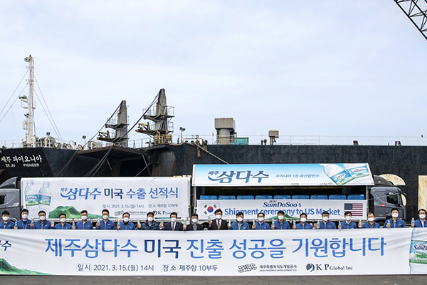 제주개발공사는 제주삼다수 미국 수출을 위한 선적식 행사를 시작으로 본격적인 미국 시장 진출에 나선다고 16일 밝혔다.