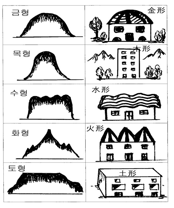 금성(金星)은 산봉우리가 둥글고 풍부하며 마치 종 또는 가마솥의 뚜껑 모양과 흡사하다. 혹은 철모나 바가지를 엎어놓은 것처럼 둥그스레하니 들판에 곡식을 많이 쌓아 둔 상이다. 다른 말로 부봉사(富峰砂)라고도 하며 산에 청명한 기운이 감돌면 큰 사업가나 기업가, 충신, 부장 등이 나온다.