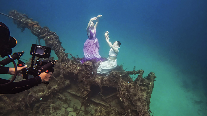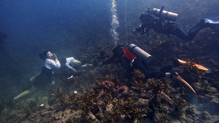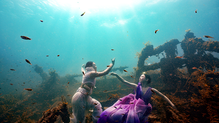 제주 신화에 등장하는 이승과 저승의 경계 서천꽃밭을 제주 바닷속에 연출한 수중 퍼포먼스 영상 작품이 전시된다.