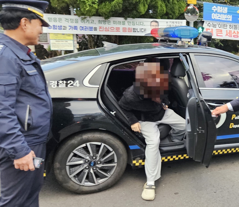 13일 오전 7시 55분께 제주 서귀포시 월드컵경기장 인근 버스정류장에서 버스를 놓친 수험생이 경찰의 도움으로 안전하게 시험장에 도착할 수 있었다.