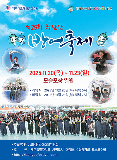 ‘청정 바다의 흥과 멋과 맛의 향연’을 주제로 열리는 이번 축제는 방어의 풍미를 맛보고, 제주 바다 문화를 체험할 수 있는 행사 등으로 펼쳐진다.