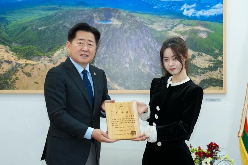 오영훈 제주지사는 이날 집무실에서 위촉장을 직접 전달하며 "김뭉먕 씨가 청년의 시선으로 제주의 자연과 문화예술축제를 홍보해 국내외 청년층에게 제주 브랜드 가치를 높이는 데 앞장서 주길 기대한다"고 말했다. [제이누리=이기택 기자]