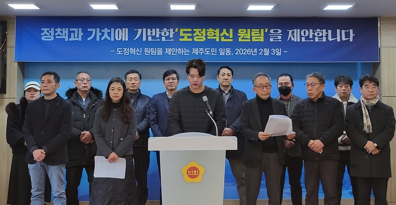 이들 제주도민 167명은 3일 오전 10시 제주도의회 도민카페에서 기자회견을 열고 ‘정책과 비전에 기반한 도정혁신 원팀 제안 성명서’를 발표했다.