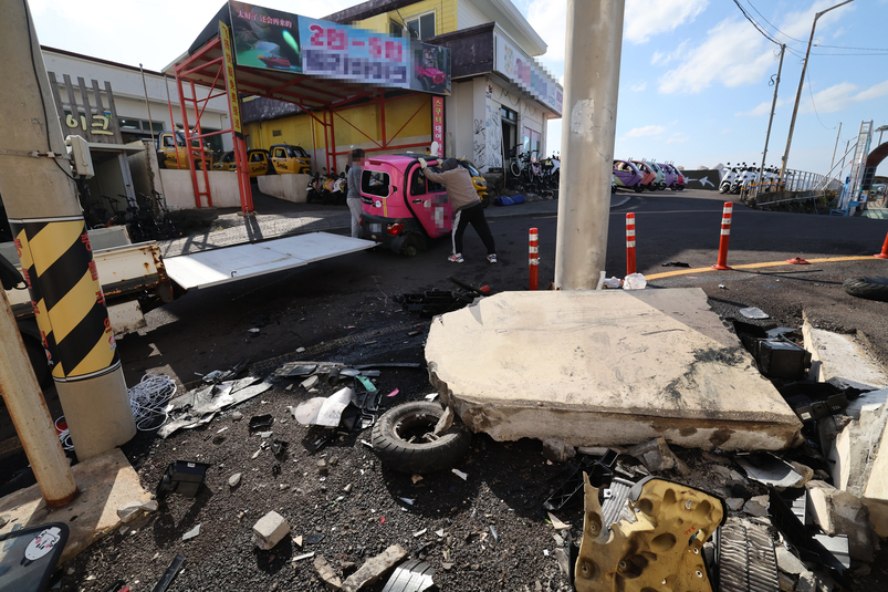 목격자 등에 따르면 사고 차량은 배에서 내린 지 얼마 되지 않아 돌연 '부웅' 하고 급가속해 약 150m를 질주하며 사고를 냈다.
