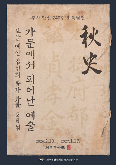 제주도 세계유산본부는 오는 13일 제주추사관에서 특변전 '추사, 가문에서 피어난 예술'을 연다고 11일 밝혔다.