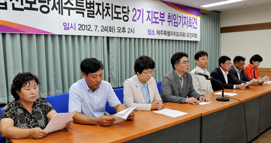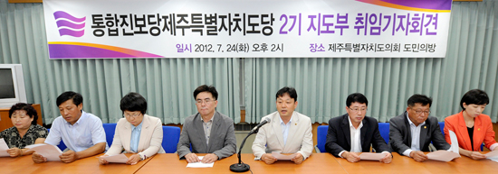 통합진보당 제주도당의 2기 지도부와 도의원 5인은 “지역 현안에 대한 진보적인 대안 마련, 정책으로 승부하는 대중적 진보정당의 진면모를 갖추겠다”며 유연한 진보정당으로 거듭날 것을 재차 다짐했다.