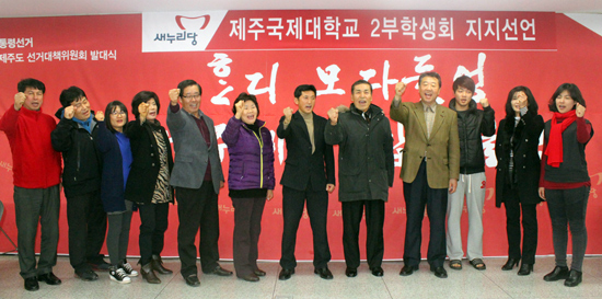 제주국제대학교 2부학생회는 5일 새누리당 제주선대위 선거사무소에서 박근혜 후보에 대한 지지를 선언했다.