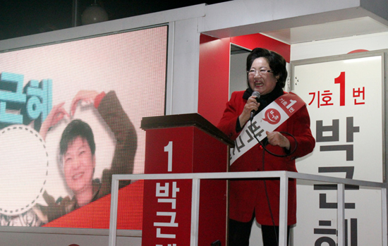 김을동 새누리당 중앙선거대책위원회 여성위원장이 13일 제주를 찾아 제주도민들에게 박근혜 후보 지지를 호소했다.