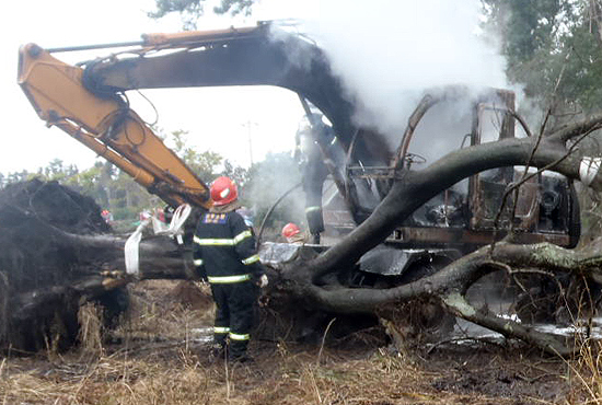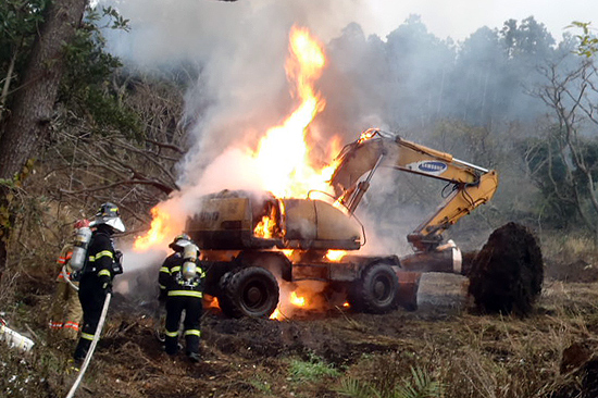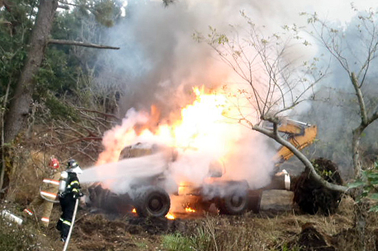 17일 오전 10시18분쯤 제주도 서귀포시 성산읍 고성리의 한 임야에서 나무심기 작업하던 굴착기(13톤)에서 불이 났다.