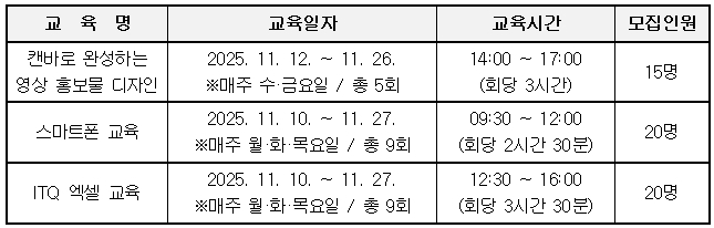 제목 : 11월 서귀포시민 정보화교육 수강생 모집 안내