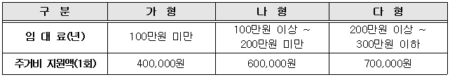 □ 지원제외 : 공공임대, 매입임대, 전세임대, 부양의무자 주택 거주자 등