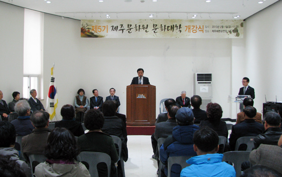 이날 개강식에는 오홍식 제주부시장, 정수현 한국문화원연합회 제주도지회장과 문화원 관계자, 문화대학 강사와 수강생 50여명이 참석했다.