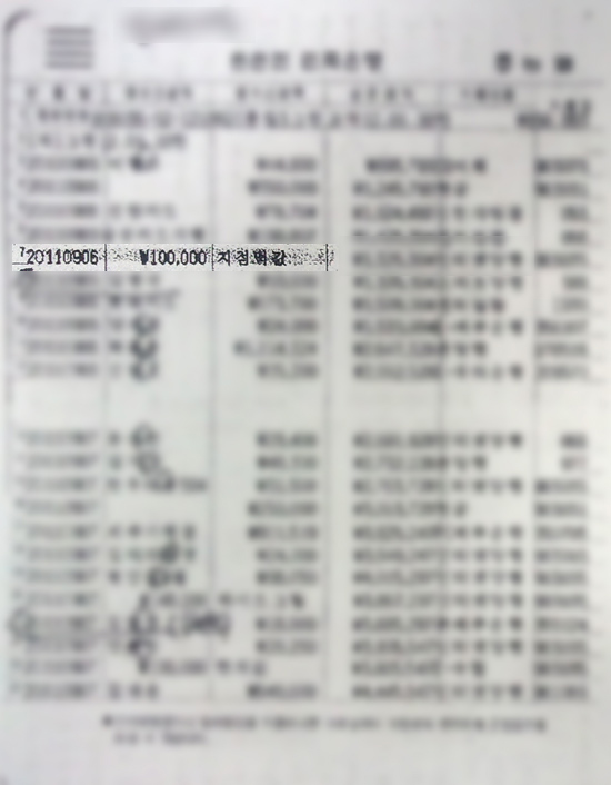 경실련이 가정대리점으로부터 확보한 통장 내역에 따르면 연간 떡값 20만원씩 정기적으로 나간 것을 확인할 수 있다.