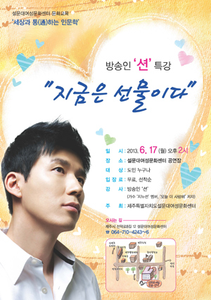 설문대여성문화센터가 진행하는 문화교육 ‘세상과 통(通)하는 인문학’의 일환으로 마련된 이번 특강의 주제는 '지금은 선물이다'다.