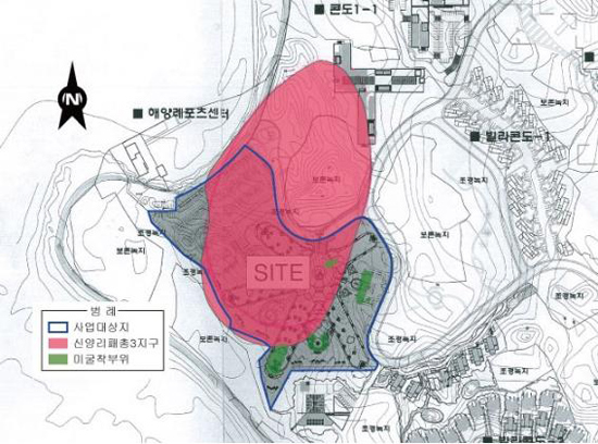 시가 제시한 신양리 패총3지구의 일부 저촉 토지는 서귀포시 성산읍 고성리 127-2번지(대지), 127-18번지(임야), 129번지(임야) 등 3필지다.