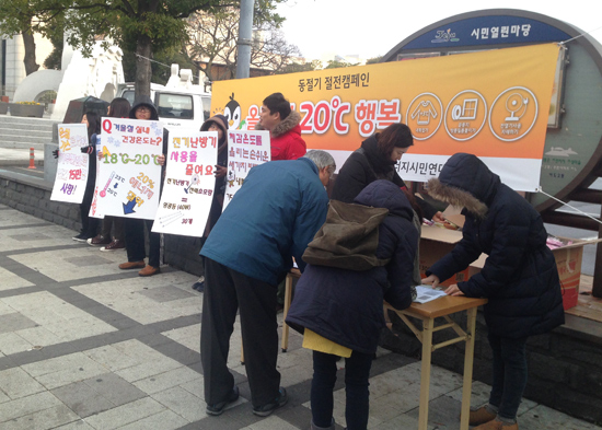 캠페인에서는 실내온도 18~20도 맞추기, 전기난방기 사용 줄이기, 내복 입기 등을 통한 겨울철 에너지 절약을 홍보했다. 행사에 참여한 시민들에게는 수면양말을 증정했다.