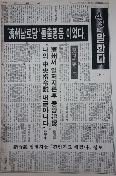그런데 ‘남로당 제주도당의 독자적 행동’이라고 주장하는 연구자들의 글도 듬성듬성 보였다. 이 문제는 너무도 예민한 사안이었기에 처음에는 신문 연재물 제목도 ‘지령설’과 ‘독자적 감행설’이 팽팽하게 엇갈린다는 수준의 중립적 내용으로 뽑았다.