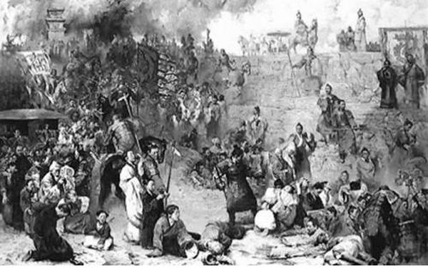 진이 붕괴된 후 6국의 왕공 귀족의 후손들과 지역 군웅, 농민들이 반란을 일으켰다. 그 중 먼저 함양에 도착해 진왕의 항복을 받아낸 이는 유방(劉邦)이었다. 하지만 초(楚)의 항우가 대군을 이끌고 진격해 오자 유방은 함양을 포기하고 물러났다. 항우 군대가 진군하자 진 왕조의 영화를 상징하던 함양은 항우 군대에 의해 난장판이 됐다. 학자들은 항우가 함양을 불태우면서 함양 궁궐에 보관돼 있던 전적들도 그때 불탔다고 추정하고 있다. 청나라 유대괴(劉大櫆)는 「분서변」에서 ‘진의 진귀한 서적들이 불탄 것은 항우의 죄’라고 비판했다.
