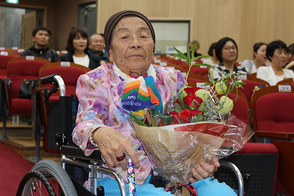어머니를 모시고 대상을 받으러 가는 날, 어머니는 한 송이 꽃처럼 어여쁘게 차려 입으셨다. 그리고 수상 장소인 김만덕 기념관은, 생애 최고의 상을 받는 어머니에게 더 없이 훌륭한 무대가 돼 주었다. 거동이 불편한 어머니를 위해 주관기관인 <제이누리>는 휠체어를 마련해 주었고, 수상자들 모두가 어머니의 느린 걸음을 기다리고 참아주었다. 어머니를 대신해서 수상소감을 얘기하는 동안, 어머니를 바라보는 내 눈에선 눈물이 고였다. 참으로 고마운 우리 어머니, 부디 100세까지 건강하게 살아주세요.