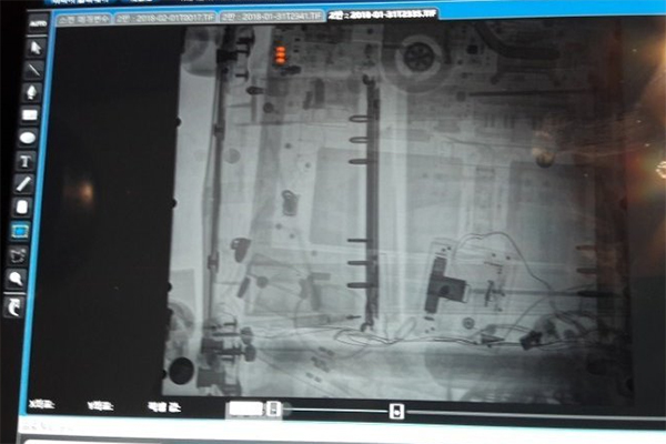 ![제주지방경찰청 공항경찰대가 지난달 31일 오후 11시10분께 항공기 운항 종료 후 공항 3층 여자화장실에서 여행용 가방을 발견, 엑스레이 감식 후 폭발물 의심물체로 판단했다. 사진은 엑스레이 판독 중인 여행용 가방. [제주지방경찰청]](/data/photos/201802/35114_47131_283.jpg)