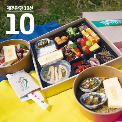 성산읍 섭지코지 인근에 위치한 흑돼지박스는 든든함으로 치자면 둘째가라면 서럽다. 메뉴 구성 중 흑돼지박스와 쉬림프박스, 어느 것을 선택해도 당신은 센스 만점! 또, 서귀포 이중섭 거리에 위치한 제주의 맛과 향을 듬뿍 담은 비바리킴의 도시락과 푸짐한 한 끼 제주한끼 도시락, 그리고 제주의 전통 도시락을 뜻하는 동고량의 도시락도 사랑을 꽃피울 피크닉 도시락으로 손색없겠다.