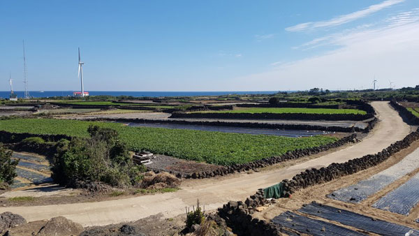 끝이 없을 듯 이어진 밭담길은 흑룡만리의 모습을 드러내며 하늘과 맞닿아 있는 지평선을 향해 있다. 파란 하늘 속으로 곧 날아오를 것만 같다.