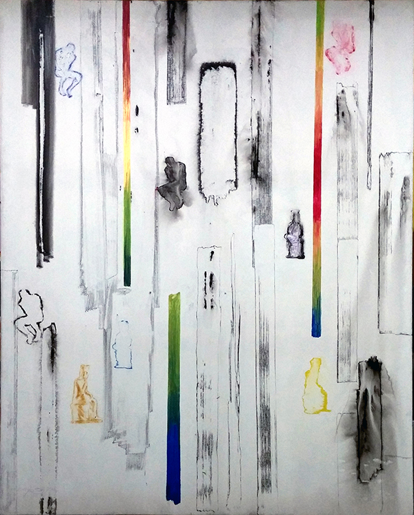 ‘지금 여기에서’라는 제목의 작품이다. 2014년 정글그룹전 ‘작가정신을 묻는다’(안양 롯데갤러리)에 출품한 작품이다.