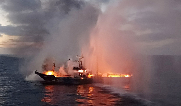 12일 서귀포해양경찰서에 따르면 이날 오전 3시 52분 제주 서귀포시 대정읍 마라도 남동쪽 약 35㎞ 해상에서 조업지로 이동하던 부산 선적 고등어잡이 대형 선망 어선 A호(129톤, 승선원 27명)에서 불이 났다는 신고가 서귀포해경에 접수됐다.