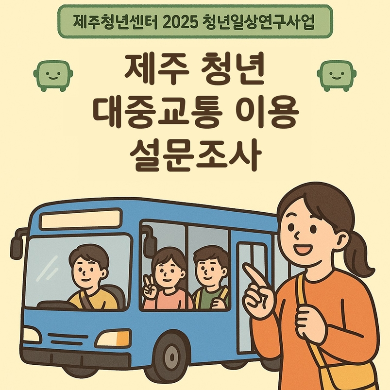 이번 조사는 '2025 청년일상연구사업'의 일환으로 추진되는 것이다. 만 19세에서 39세 사이의 제주 거주 청년 가운데 주 1회 이상 버스를 이용하는 이들을 대상으로 한다. 오는 22일까지 참여할 수 있다.