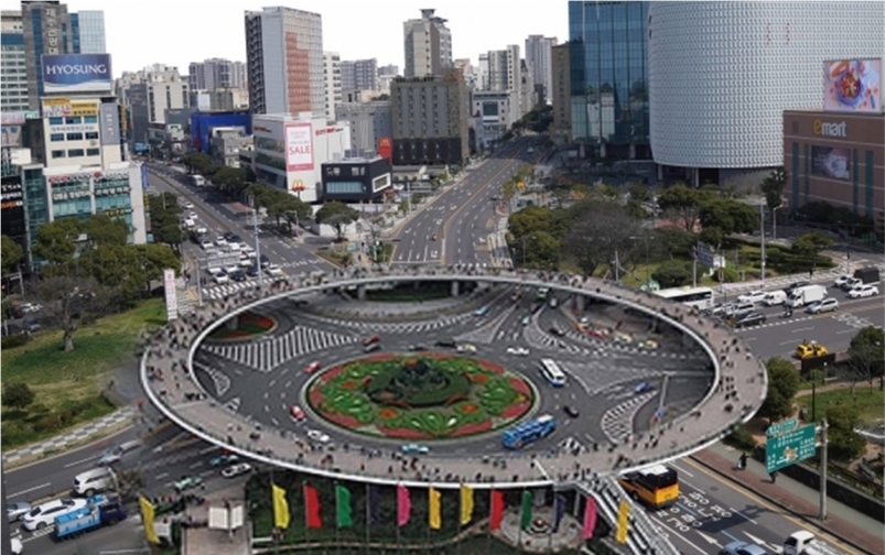 14일 제주도에 따르면 제주시 연동·노형동 일대 교통 혼잡 완화를 위한 대안으로 공중보행로(원형육교) 설치가 유력한 방안으로 떠오르고 있다.