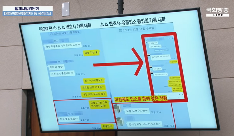 서 의원이 공개한 지난해 12월 11일 대화에서 B 변호사는 "오늘 2차는 스윽 애기 보러 갈까?"라고 제안했고, A판사는 "아유, 좋죠, 형님"이라고 답했다. 두 사람은 고교·대학 선후배 관계로 알려져 있다. 특정 사건과 관련해 유리한 판결을 약속했다는 의혹까지 불거졌다.