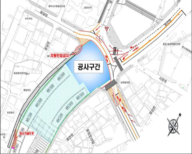 공사 기간 제주시 용담사거리에서 제주서초교 방면 도로는 기존 4차선에서 2차선으로, 제주시 용한로에서 용담사거리 방면 좌회전 차로도 2차선에서 1차선으로 축소된다.