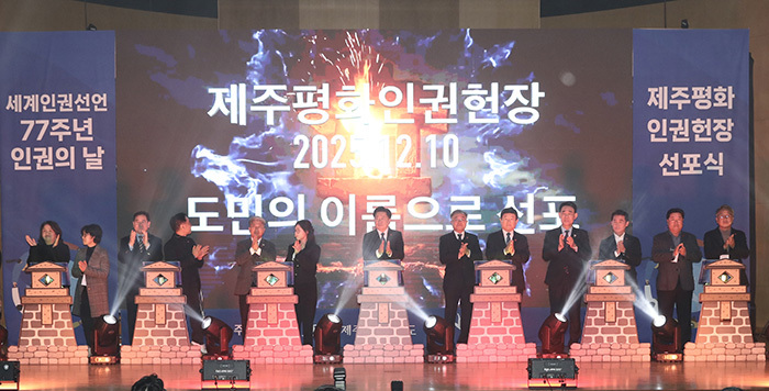 제주4·3의 민주주의와 평화, 인권의 가치를 바탕으로 '평화와 인권의 섬 제주'를 실현하고자 제정된 제주평화인권헌장이 10일 공식 선포됐다.