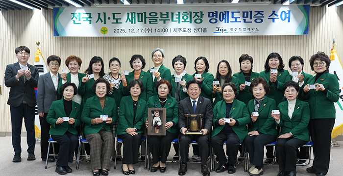 제주도는 전국 시·도 새마을부녀회장에게 명예도민증을 수여했다고 17일 밝혔다.