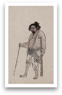 대종(代宗) 이예(李豫) 대력(大曆) 연간(776~779)에 동도(東都, 낙양) 천진교(天津橋, 낙양 옛 성 서남쪽에 있었다)에 두 팔이 없는 거지가 있었다. 오른발로 붓을 집어 글을 써주면서 돈을 받아 생활하고 있었다. 글씨를 쓸 때마다 먼저 서너 번 붓을 하늘로 1척이나 높게 띄웠는데도 한 번도 땅에 떨어뜨리지 않았다. 그가 쓴 글자는 정자인 해서였다. 일반인이 손으로 쓴 글씨보다도 뛰어났다.
