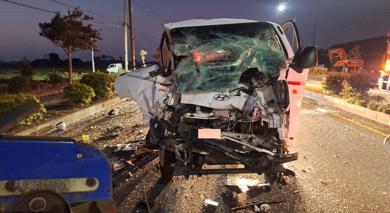서귀포 대정읍에서 1톤 트럭과 트랙터가 부딪혀 운전자 2명이 중상을 입었다.