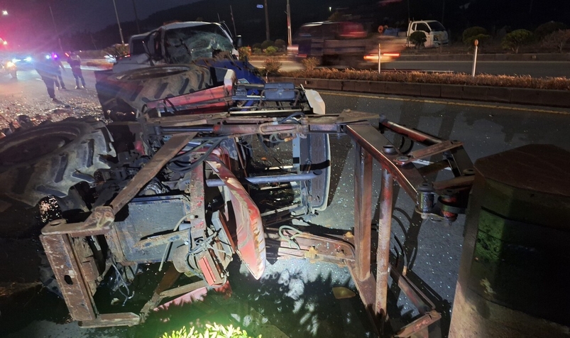 트랙터 운전자 A씨(70대·남)는 자력으로 탈출했으나 머리를 크게 다쳐 병원으로 옮겨졌다