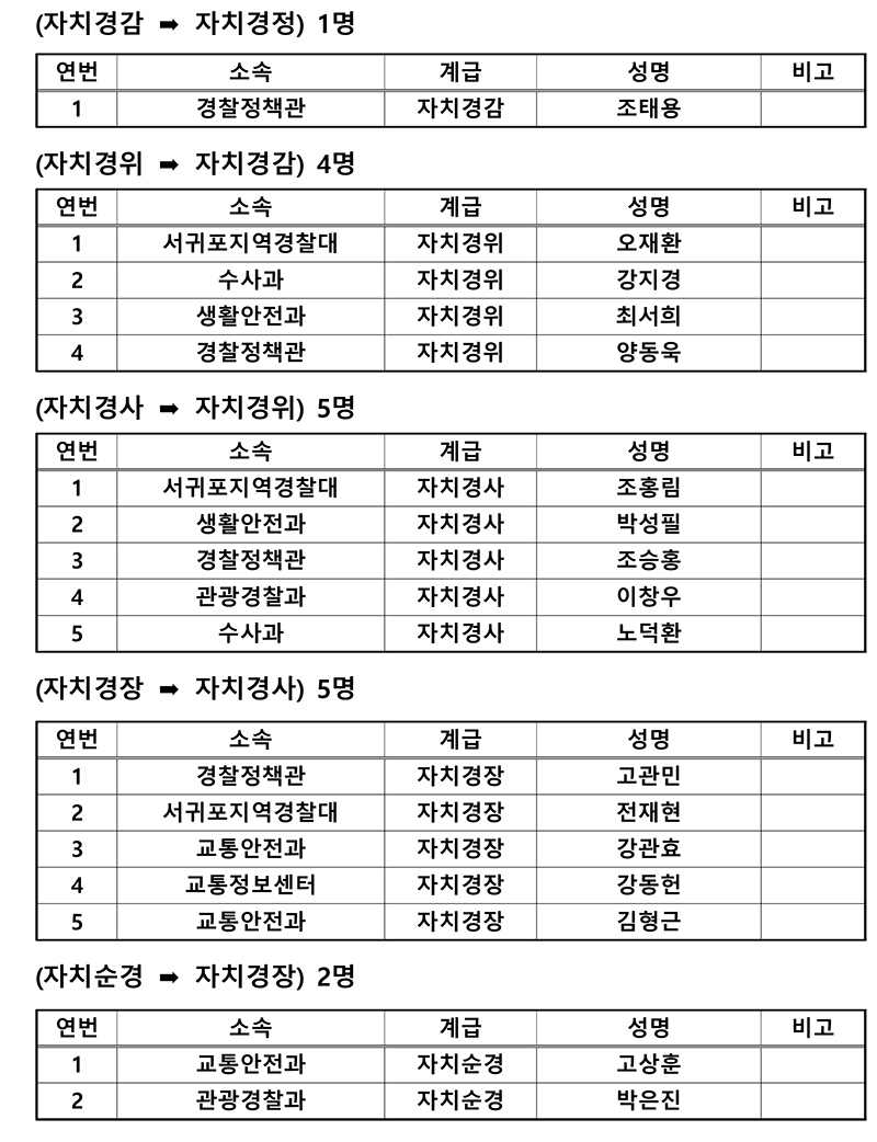 ※ 2026년 제주자치경찰 승진자 명단
