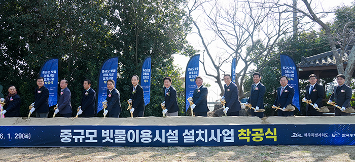 도는 이날 서귀포시 남원읍 위미의례회관에서 착공식을 열었다. 착공식에는 오영훈 제주지사를 비롯해 기후에너지환경부, 도의회, 서귀포시, 한국농어촌공사, 시공사 관계자와 지역주민 등 200여 명이 참석했다.