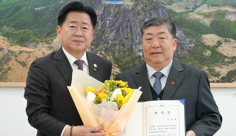 제주도는 20일 강덕환(65) 시인을 제주문학관 제5대 명예관장으로 임명했다. 오랜 시간 제주의 역사와 정서를 시로 풀어내 온 강 시인이 제주문학관 운영과 발전 방향에 힘을 보태게 됐다.