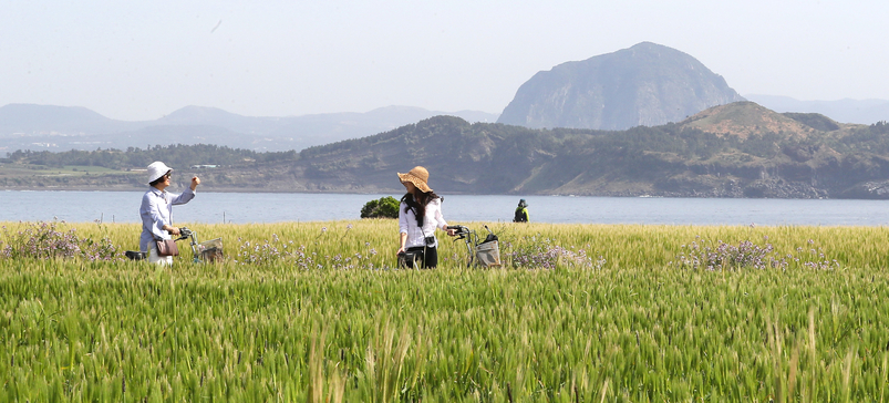 곳곳을 연분홍빛으로 물들였던 벚꽃은 끝물이지만 제주에서는 봄 축제가 이어진다. 벚꽃 다음은 초록초록 푸르게 돋아나는 청보리다.