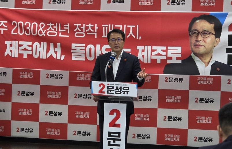 6.3지방선거에서 제주도지사 선거에 출마한 국민의힘 문성유 후보가 청년 유출 문제 해법으로 ‘정착형 성장 모델’을 전면에 내세웠다.
