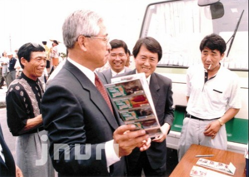 아까 감귤에 대해 말씀드렸지만, 여러분도 제주 감귤에 대한 인식을 달리 하셔야 할 겁니다. 우리가 평균해서 60만 톤을 생산합니다. 그런데 풍년 들었을 때와 흉년 들었을 때가 약 20만 톤이나 차이가 나요. 이게 기술적으로 해결할 수 있는 것이면서도, 농민들이 버릇이 되어 있어서 생산되는 대로 팔아 왔다는 거죠. 왜냐하면 경쟁해 본 적이 없어서요. 대한민국에서 제주도 말고 감귤 생산하는 곳이 있습니까? 제주도뿐이니까, 질을 좋게 만들든 나쁘게 만들든 생산만 해놓으면 소비자들은 사 먹을 수밖에 없죠. 소위 Product-Out 즉 만들어서 보내기만 하면 그냥 사먹어 주었단 말 이예요. 그러나 이제는 여러분들이 아시는 것처럼 개방시대, 전 세계가 하나의 시장 아닙니까? 오렌지 수입도 금년 7월부터 전면 개방되었습니다. 그런데 이 60만 톤이 얼마나 큰 물량이냐 하면, 대한민국 전체 과일 중에 20%나 차지하는 겁니다. 일본이 1년에 생산하는 감귤 생산량이 120만 톤입니다. 일본 전체 감귤 생산량의 50%를 우리 조그만 제주도에서 생산하는 거예요. 그러기 때문에 우리 제주에서는 감귤을 생명산업이라고 하는데, 이 감귤산업의 구조를 조정하기 위해서 우리들이 생산조정제를 시행하기 위한 노력들을 했습니다. 생산조정제 조례를 말씀드렸지만, 농민들이 다 동의하고 도민들의 대의기구인 도의회에서 조례까지 만들었지요. 그러나 막상 금년 수확 시에 시행하려니까, 모두들 들고 일어나는 거예요. 조례에 정한 규격미달인 비상품감귤을 못 버리겠다 이거지요. 그러니 감귤가격도 그냥 곤두박질쳤죠. 이제야 ‘도지사의 말을 들을 걸 잘못했다’ 그러고 있거든요. 이번에 조금 보완을 합니다만, 경쟁시스템으로 가야만 됩니다.