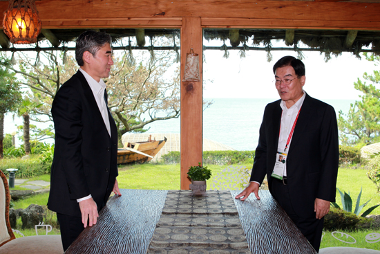 이날 성김 대사는 우근민 지사에게 "총회개막식과 환영리셉션이 매우 성공리에 끝났다"고 축하했다.