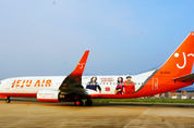 ▲ 제주항공, 한류스타 래핑항공기 애경그룹 계열의 제주항공이 한류스타 장근석, 최지우, 김현중의 얼굴을 래핑한 ‘한류스타 래핑항공기’를 29일 공개했다. 이들 한류스타 3인은 제주항공 기내면세점인 롯데면세점의 모델이다. 제주항공은 롯데면세점과 함께 일본 중국 홍콩 필리핀 태국 괌 등 제주항공 취항국가에서 최고의 인기를 누리고 있는 장근석, 최지우, 김현중의 얼굴이 새겨진 래핑항공기로 한류홍보에 적극 나서고 있다. 제주항공은 롯데면세점과 함께 한류스타 래핑항공기를 이용한 일본인팬 초청행사 등을 계획하고 있다. 더불어 래핑기를 이용한 각종 프로모션을 진행할 예정이다. ‘한류스타 래핑항공기’는 국내선은 물론 제주항공이 취항하는 일본, 중국, 홍콩, 필리핀, 태국, 괌 등에 운항한다.