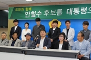▲ 안철수를 사랑하는 도민일동이 19일 기자회견을 열고 안철수 후보를 지지했다. 안철수 국민의당 대선 후보를 지지하는 도민들이 뭉쳤다. 이들은 “안철수 후보야 말로 취업난과 경제 저성장을 해결할 후보”라며 지지를 선언했다. 강상주 전 서귀포시장이 대표격으로 나섰다. 도민 300여명으로 구성된 안철수를 사랑하는 도민일동은 19일 제주도의회 도민의방에서 기자회견을 열고 “국가안보가 심히 위협박고 경제는 십수년째 저성장 제자리걸음을 면치 못하고 있다”며 이같이 밝혔다. 강상주 전 서귀포시장이 이 자리에 참석, 이들의 입장을 전했다. 국민의당은 지난 16일 강 전 시장을 지방분권위원회 부위원장이자 제주도 선거대책위원장으로 임명했다. 강 전 시장은 “젊은이들은 취업난에 시달리고 있다”며 “나라 전체가 분열돼 심히 혼란스런 이 시국에 우린 진정한 대통령이 탄생해 당면한 문제를 해결해주길 기대하고 있다”고 말했다. 그는 또 “우리의 안보를 굳건히 지키고 저성장의 늪에서 탈출해 국가경제, 지역경제가 활성화돼 온국민과 제주도민들이 걱정없이 생업에 종사할 수 있길 희망한다&rdq