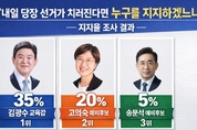 6·3 제9회 전국동시지방선거를 두 달 앞두고 실시된 제주도교육감 여론조사에서 현직 김광수 교육감이 선두를 유지하며 안정적인 우위를 보인 것으로 나타났다. 다만 지지 후보를 정하지 않은 부동층이 40%에 육박하고, 진보 진영 후보 단일화 요구도 과반을 넘어서면서 향후 판세 변화 가능성도 제기된다. 제주의소리·제주일보·제주MBC·제주CBS·제주투데이 등 도내 언론 5사는 지난 6일 여론조사기관 코리아리서치인터내셔널에 의뢰해 실시한 제2차 합동 여론조사 결과를 발표했다. 조사결과 ‘내일 당장 선거가 치러진다면 누구를 지지하겠느냐’는 질문에서 김광수 교육감이 35%로 가장 높은 지지율을 기록했다. 이어 고의숙 예비후보 20%, 송문석 예비후보 5% 순으로 나타났다. 김 교육감은 연령과 지역, 직업군을 가리지 않고 전반적으로 고른 지지세를 보였다. 특히 60대(43%)와 70세 이상(49%) 등 고령층에서 강세를 나타냈고, 보수 성향층에서도 43%의 지지를 확보하며 안정적인 기반을 구축한 것으로 분석됐다. 고의숙 예비후보는 40대(28%)와 50대(26%) 등 중장년층에서 상대적으로 높은 지지를 얻었으며 제주시 동지역(23%)과 진보 성향층(29%)에서도 평균보다